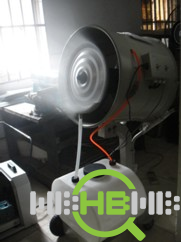 高压喷雾主机工作时,主机水箱供水至高压柱塞泵,将水压上调至7MP以上至PE管喷头产生3-10μm的雾粒用于降尘。将PE管路系统沿传送带及落料口圆周方向布置,细小的雾粒在空气中完全汽化后无滴水现象并吸收空气粉尘。主机启停时间可通过控制面板任意设定,高压进水电磁阀和高压泄水电磁阀分别控制喷雾状况的大小或启停(电磁阀控制线连接主机控制箱)。喷雾装置喷射出的可见雾长为0.5米,水滴在大气中蒸发成极其微小的颗粒,在靠近尘源的地方全部吸收、阻隔粉尘。              湖南省爱普环境工程有限公司 0731-85095888