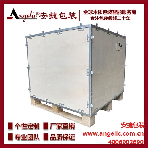 钢带箱(又名:免熏蒸包装箱、出口包装箱,胶合板包装箱,胶合板木箱,出口型包装箱,免检包装箱,出口免熏蒸免检木箱,出口木质钢带箱包装箱,钢带拉紧箱、铁木结合包装箱)快装箱是一种可拆卸折叠的,连接部件采用品牌热镀锌钢带,箱体采用全胶合板的包装箱。快装箱通常可以循环使用2次以上,包装成本低于一次性的木箱;免熏蒸处理,减少对环境的负担,可现场装配或拆卸。
