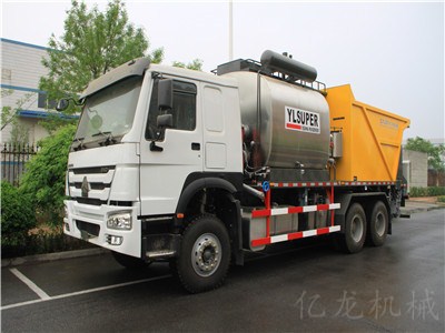 橡胶沥青同步碎石封层车是沥青结合料洒布和石料撒布同步进行,使沥青结合料和骨料之间有相当充分的表面接触以达到它们之间比较大限度的粘结性的专用设备。该设备是在我公司研制的橡胶沥青洒布车和碎石撒布机的基础上,吸收和借鉴国内、外同类设备有优点自行研制开发的,具有结构紧凑、操作简便、实用性强等特点。
