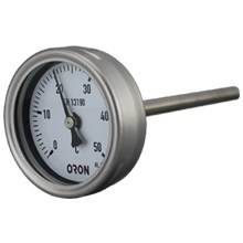 WSS-301双金属温度计其保护管、节头、锁紧螺栓等均采用1Cr18Ni9Ti材料,表壳采用铝板拉伸成型经切削加工表面黑色电泳处理,表盖与表盒采用环型双层橡胶圈螺纹密封锁紧结构,故仪表整体防水防腐性能良好,径向型仪表采用弯管型结构,外型新颖、轻巧、美观与众不同。双金属温度计是用于测量中,低温的现场检测仪表,可用来直接测量液化和气体的温度。与玻璃水银温度计相比具有无汞害、易读数、牢固耐用等优点。